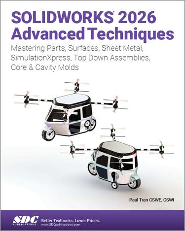 SOLIDWORKS 2026 Advanced Techniques picks up where SOLIDWORKS 2026 Intermediate Skills leaves off. Its aim is to take you from an intermediate user with a basic understanding of SOLIDWORKS and modeling techniques to an advanced user capable of creating complex models and able to use the advanced tools provided by SOLIDWORKS. The text covers parts, surfaces, SimulationXpress, sheet metal, top-down assemblies and core and cavity molds.